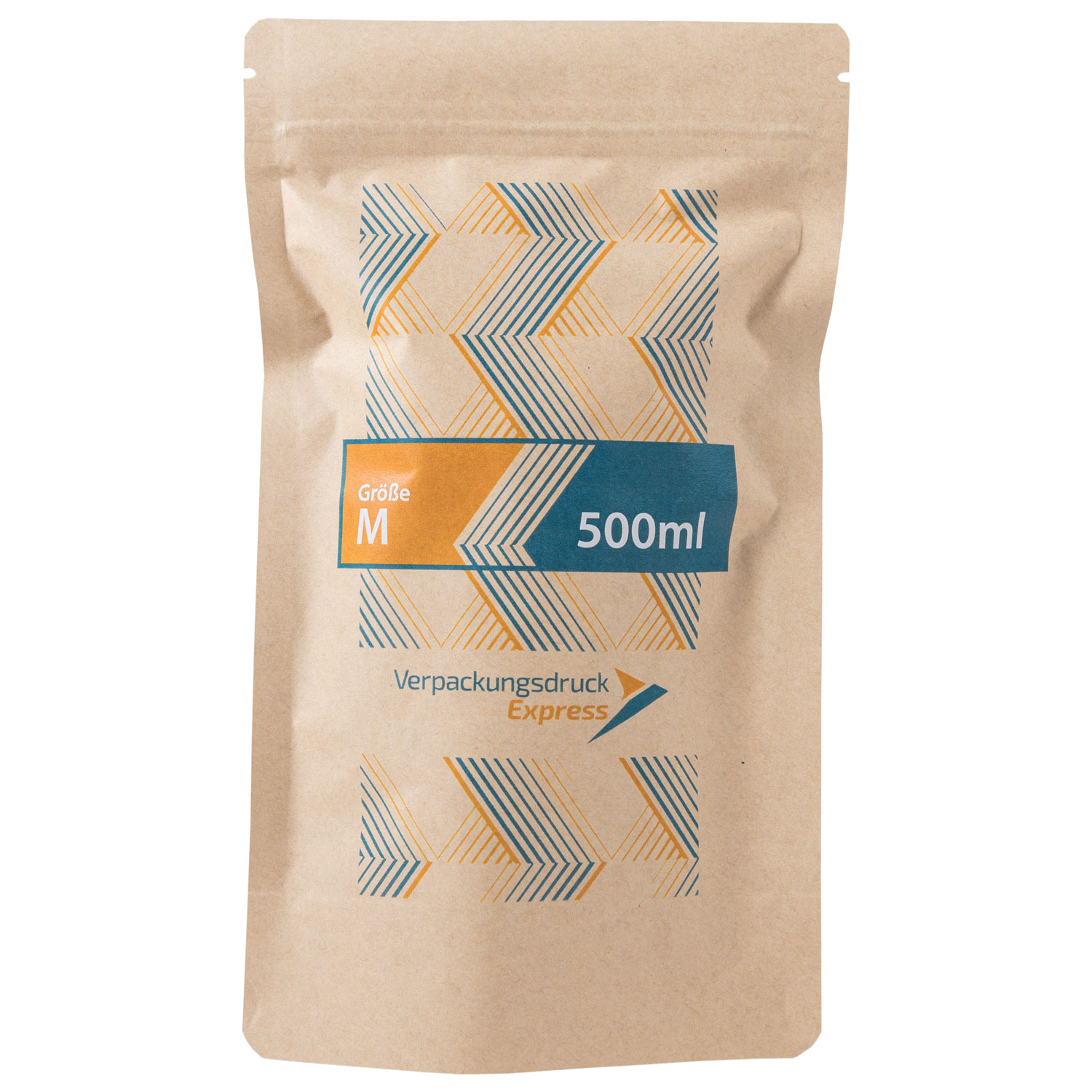 Bestellen Sie die Standbodenbeutel mit dem Volumen 500ml aus braunem Kraftpapier in kleiner Stückzahl und mit optionalem Weißdruck. Das Innenleben besteht aus einer PE-Folie und schützt den Inhalt gut vor Feuchtigkeit und Gerüchen. Der Standbeutel kann mit üblichen Schweißgeräten verschlossen werden. Für ein leichtes Wiederschließen ist der Beutel mit einem Zipper versehen. Kalkulieren und bestellen Sie direkt Ihre Standbodenbeutel aus braunem Kraftpapier.